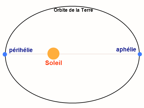 Le soleil se situe à environ 150 millions de km de la Terre. Le demi-grand axe de l’orbite de la Terre autour du Soleil, couramment appelé « distance de la Terre au Soleil », égal à 149 597 870 700, c’est depuis 1976 la valeur de l’unité astronomique. L’aphélie est à environ 152 millions de km et le périhélie à environ 147 millions de km. L’ellipticité sur la figure 1 est donc exagérée.