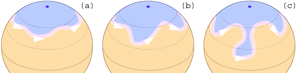 Développement d’une perturbation du front polaire. Le phénomène sé développe sur environ un millier de kilomètres et a une durée typique de quelques jours.