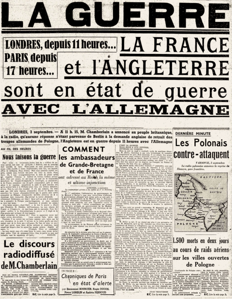 Le 3 septembre 1939, la France et l’Angleterre déclarent la guerre à l’Allemagne qui a envahi la Pologne le 1er septembre.