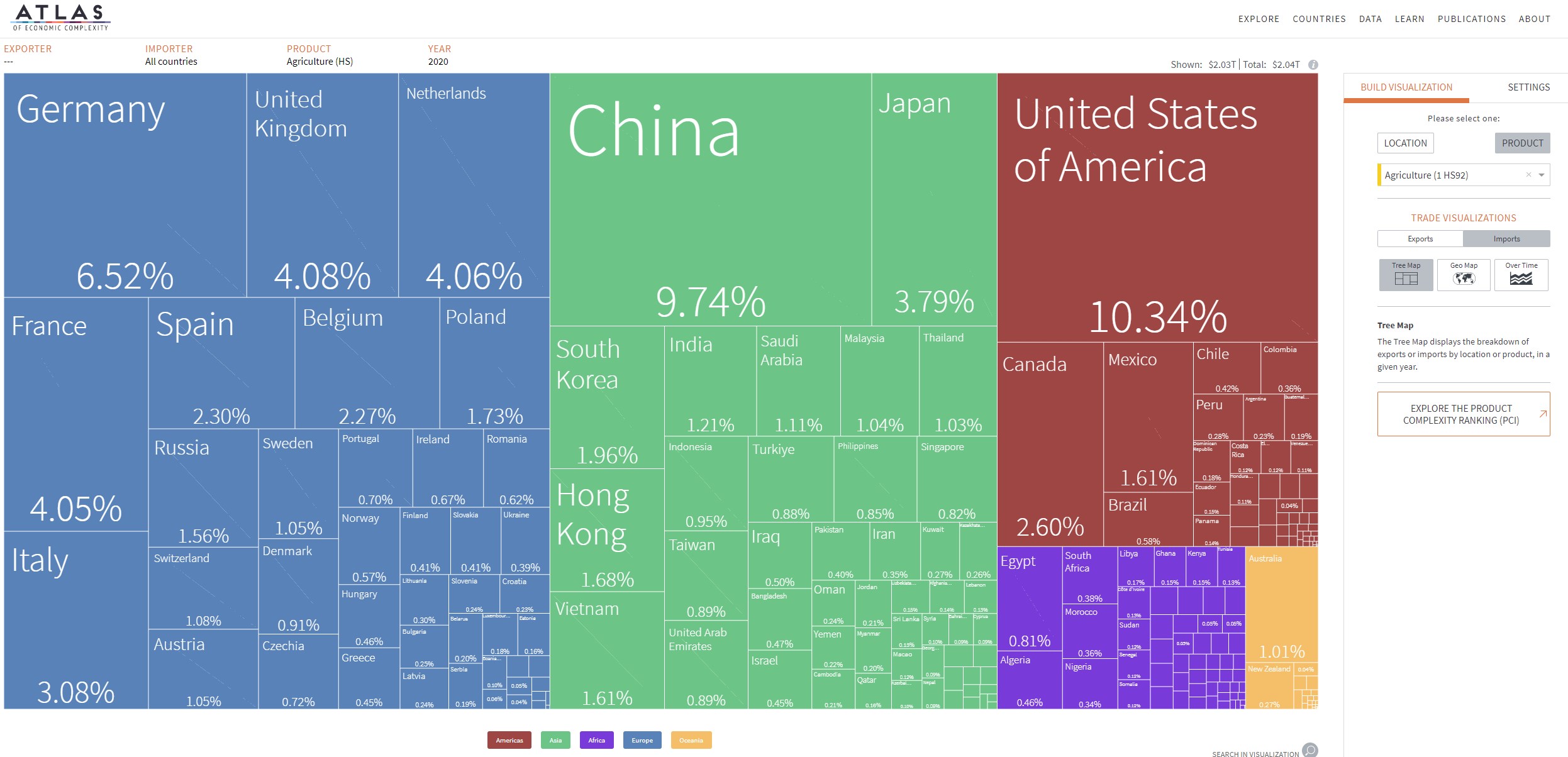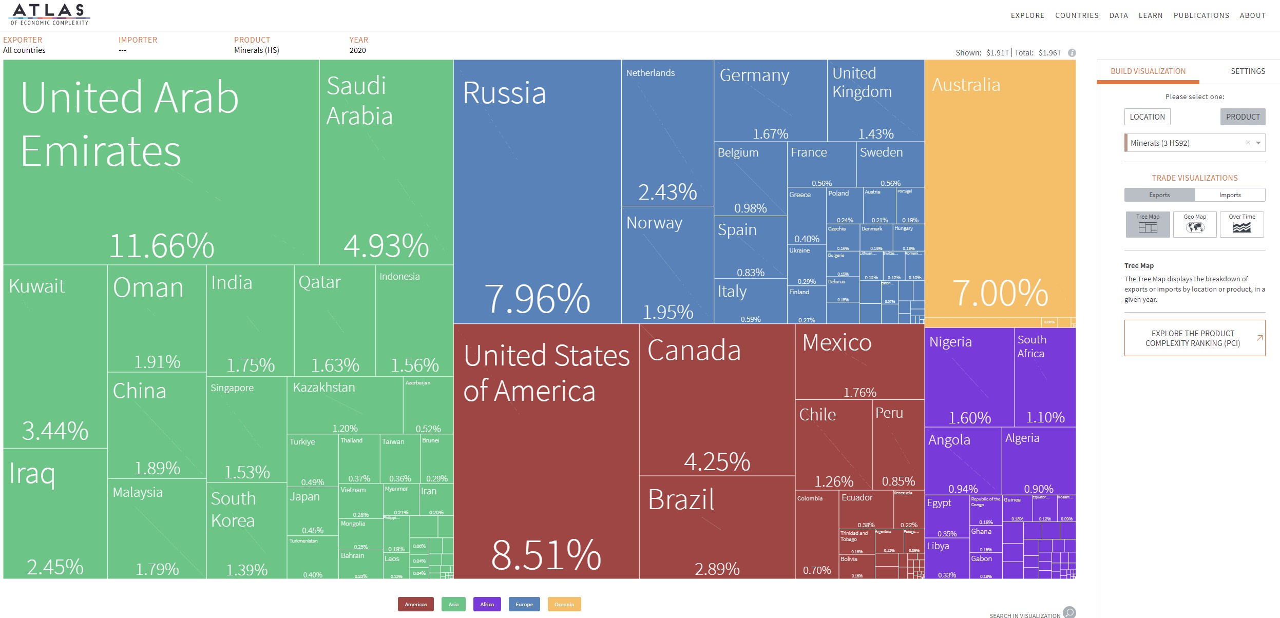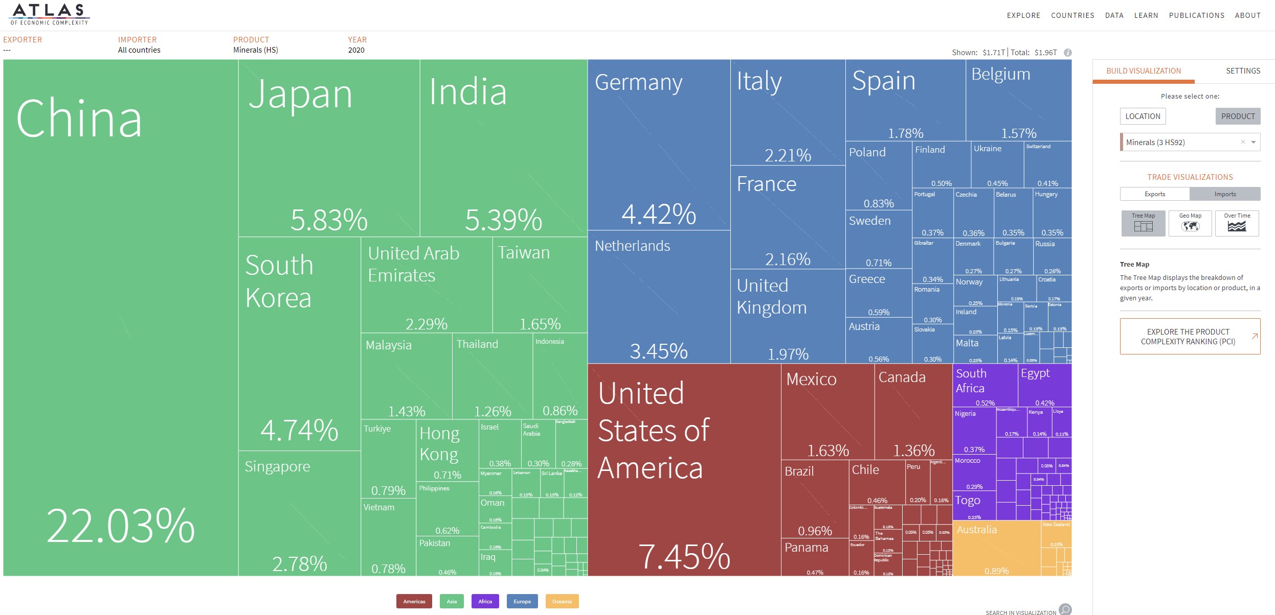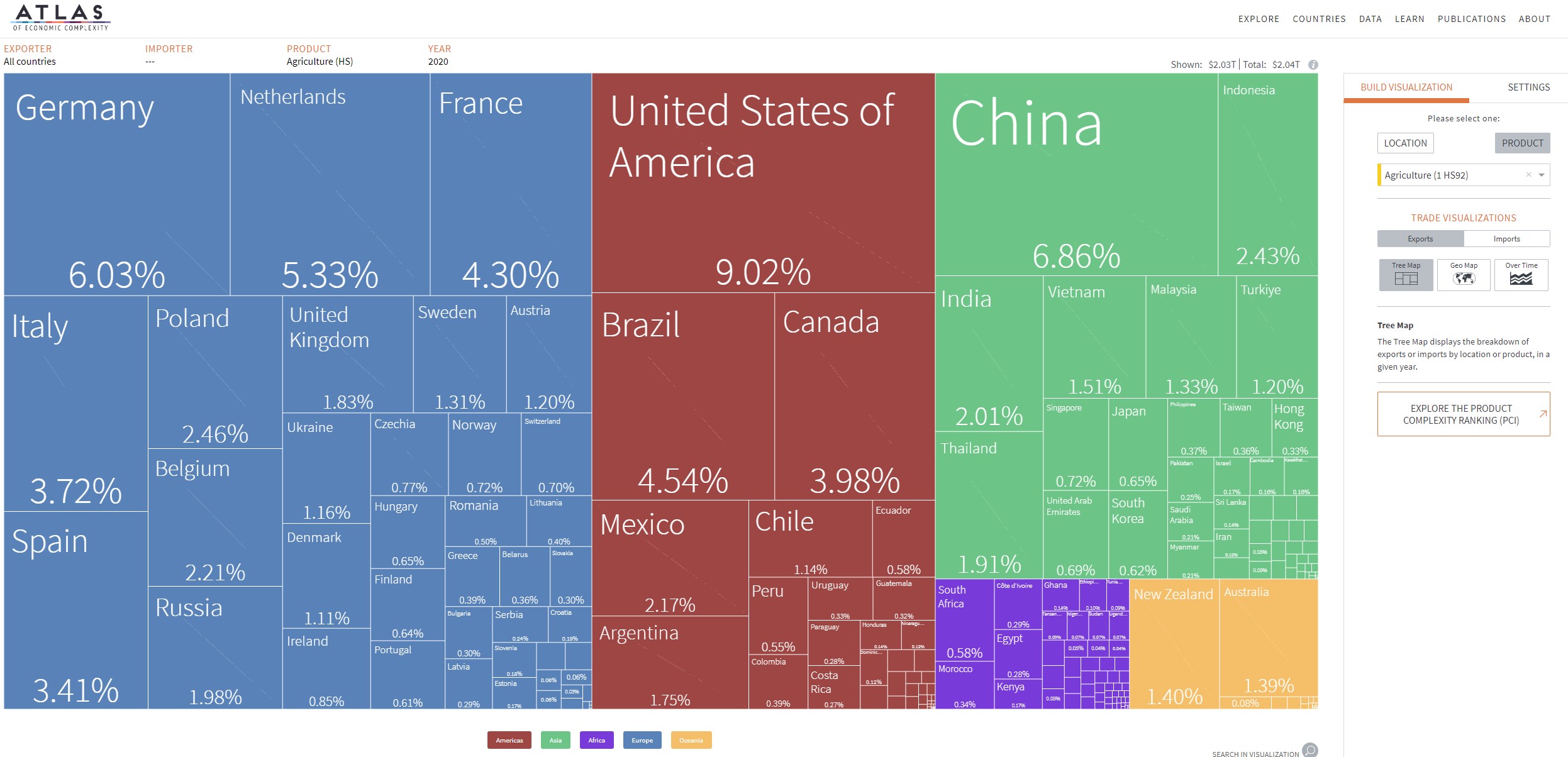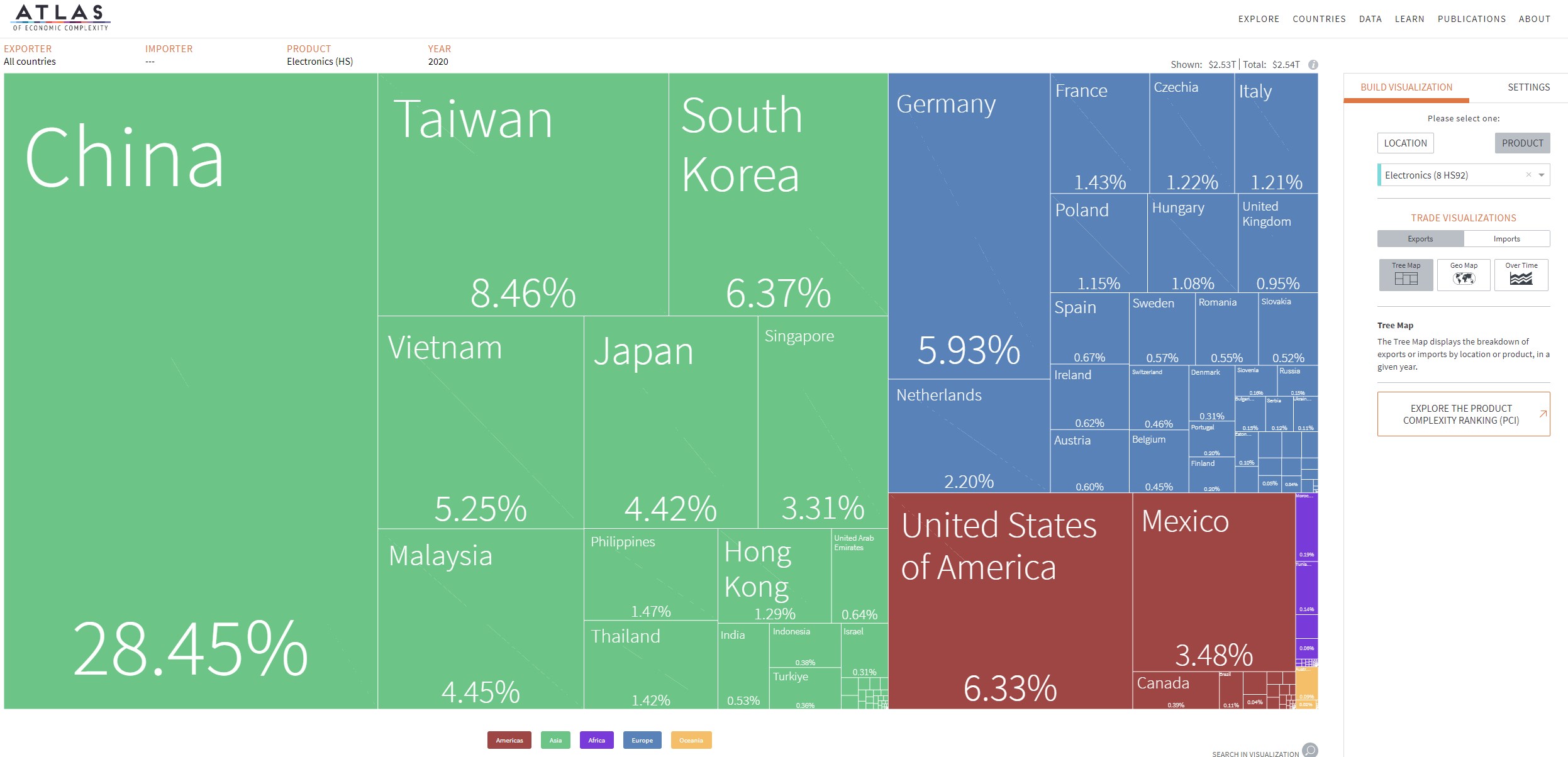 L’Atlas de la complexité économique est un outil de visualisation de données primé qui permet d’explorer les flux commerciaux mondiaux entre les marchés, de suivre cette dynamique dans le temps et de découvrir de nouvelles opportunités de croissance pour chaque pays. Construit à la Harvard Kennedy School of Government, l’Atlas est alimenté par les recherches du Growth Lab de Harvard et constitue l’outil phare de The Viz Hub, le portefeuille d’outils de visualisation du Growth Lab.
